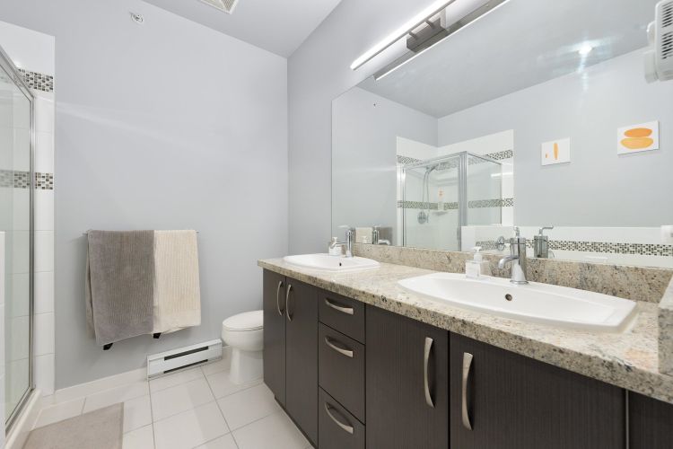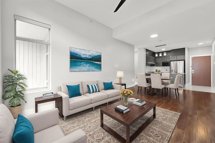 Well priced, Top-floor 2-bedroom, 2-bath condo with 2 parking stalls, soaring 10.5 ft ceilings, and a bright, spacious layout with bedrooms on opposite sides for added privacy. Features include a primary suite with walk-in closet and 5-piece ensuite, modern LED lighting with fan/light combos, roller shades, and blackout blinds. Conveniently located steps to Walmart, banks, restaurants, and just minutes to Richmond's top shopping and community centers—this rare find won't last! Open house Saturday April 11 12:30-2:30