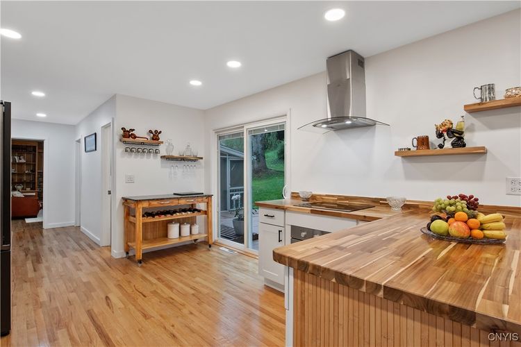 Welcome to this thoughtfully renovated Colonial that proves good things come in well-designed packages! This charming four-bedroom, two-and-a-half bathroom home has undergone a complete transformation, ensuring every corner reflects modern comfort while maintaining classic appeal. The heart of the home features a beautifully updated kitchen equipped with brand-new appliances and contemporary finishes that make meal preparation a joy. Kitchen features all new cabinets, butcherblock countertops, all new stainless steel appliances, country dining room with bar style seating and recessed lighting throughout. Throughout the house, tasteful updates create a cohesive flow between spaces, while the cozy fireplace in a private guest suite provides the perfect gathering spot for chilly evenings. The enclosed sunroom offers a delightful retreat where morning coffee tastes better and afternoon reading feels like a mini-vacation. Four generously sized bedrooms, including a spacious master bedroom with large master bath that features a Sleek double vanity, walk-in glass shower, and modern finishes meet everyday luxury and function. Outside, the modestly sized deck that faces a wooded lot presents endless possibilities for nature watching, gardening and grilling. Full basement workshop for DIY enthusiasts and hobbyists who appreciate dedicated project space. Conveniently located in the heart of the village of Manlius, close to all shopping including Tops, Wegmans and major clothing outlets. Outdoor enthusiasts will appreciate easy access to the scenic Green Lakes and Limestone Creek Greenway Trail and proximity to the highly regarded Fayetteville-Manlius High School district.