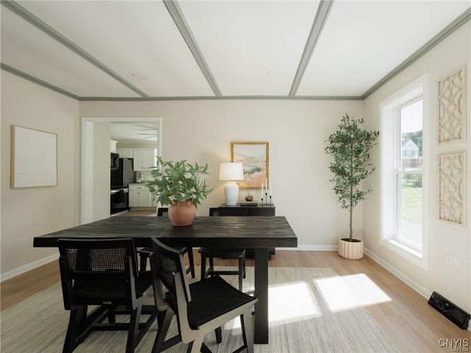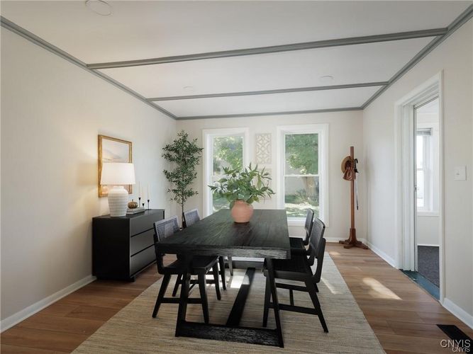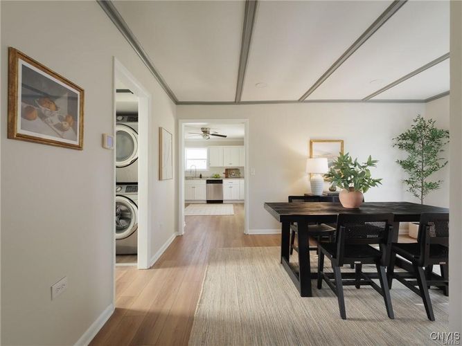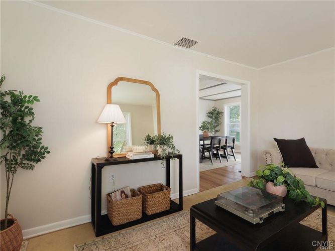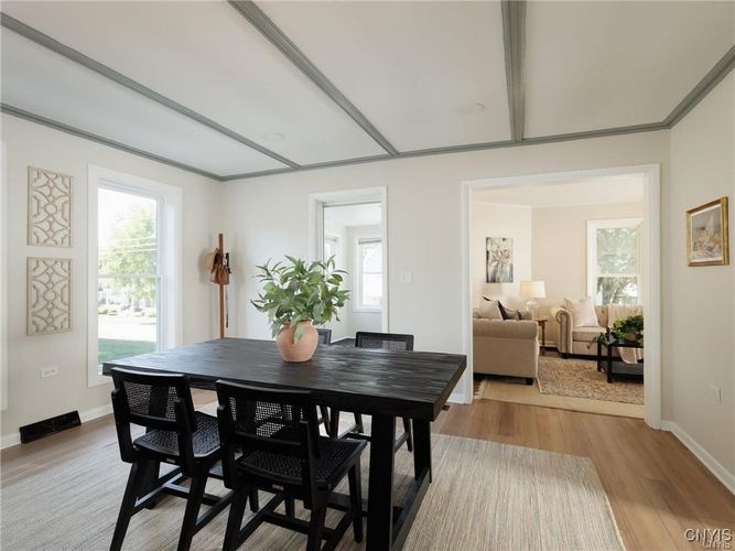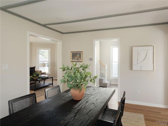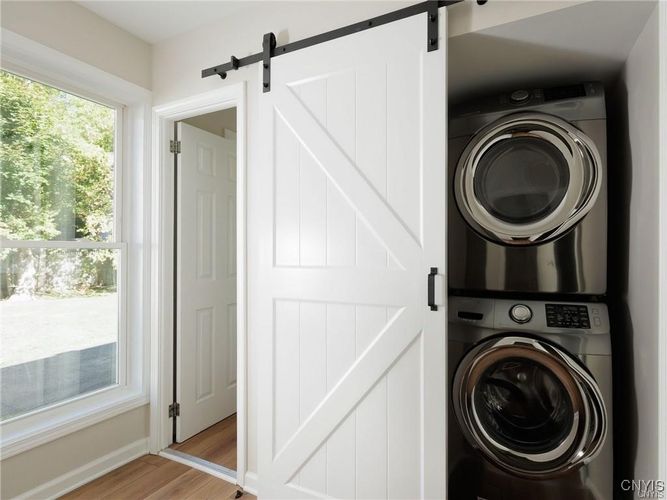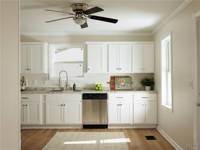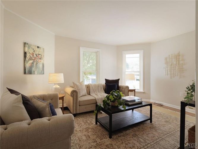 This beautifully updated 3-bedroom, 2-bathroom home is ideally located in close proximity to the historic Thompson Park, downtown Watertown and only 15 minutes from Ft. Drum. Need space? This home is nestled on a large 10,000 sq. ft. double lot. The entire interior has been meticulously remodeled, offering a modern and move-in ready space. From the brand-new kitchen cabinets, countertops, sink, and like-new appliances, to the updated electrical, lighting, plumbing, and flooring throughout, no detail has been overlooked. Both bathrooms have been completely renovated, and the home’s interior doors and sheetrock have been replaced to ensure a fresh, polished look. The formal dining room provides a wonderful space for entertaining, while the cozy living room offers a welcoming retreat. For added convenience, the laundry room is located on the first floor, making chores a breeze. Two of the three bedrooms feature hardwood floors beneath the new carpet, allowing you to easily uncover the classic charm if desired. Additionally, there’s ample closet space throughout the home to meet all your storage needs. The oversized single-stall garage comes with a brand-new overhead door, offering plenty of space for both your vehicle and additional storage. Enjoy the newly built back porch which opens into the expansive yard. The home also boasts a blacktop driveway, ensuring smooth access year-round. What's more? Check out the huge tart cherry tree in front of the house. The sellers picked over 15 gallons of fruit off this tree for jam and pies this year. YUM! All renovations have been carried out by professional contractors, guaranteeing top-notch quality and craftsmanship. Don’t miss out on this opportunity to rent a beautiful home- month to month lease. Water/sewer included. No pets. No smoking inside this home. No pets. Apply today, no charge and schedule your showing!
