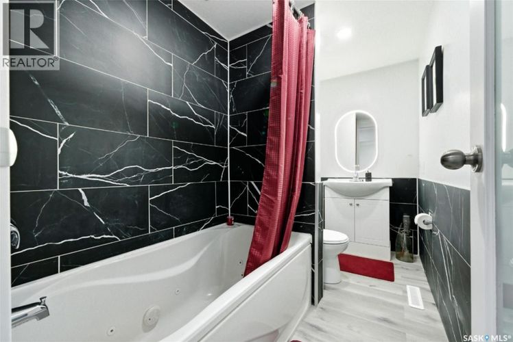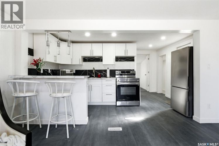 From Studs to Stunning - Old Soul, Brand-New Home. Extensively rebuilt with modern finishes, this move-in ready home offers stylish, low-maintenance living. Originally built in 1914, this charming bungalow in Broders Annex has been completely reimagined & brought back to life - taken right down to the studs and rebuilt as a move-in ready, nearly brand-new home. With 636 sq. ft. of living space on the main floor & a fully developed basement, every inch has been updated with modern design and thoughtful finishes. The main floor features a bright, open living space with all new flooring, fresh paint, updated lighting with pot lights throughout & a modern textured ceiling. The fully renovated kitchen includes new cabinetry, kitchen bar seating for two & stainless steel appliances. You'll also find one bedroom & a stylish 4-pc bathroom on this floor, complete with a relaxing jet tub. Upgrades include all new drywall & insulation, newer furnace, upgraded electrical & plumbing, some new windows, reinforced roof with replaced boards & new shingles, and water heater is owned. The home also features new basement insulation, complete interior weeping tile with blue skin applied to all walls & a newly installed sump pump for added peace of mind. The fully developed basement extends your living space with a large bedroom (window may not meet egress), brand new 3-pc bathroom with beautiful, tiled shower, laundry area & wide hallway with closet storage - perfect for a roommate, home office, or guest space. Outside, enjoy the large deck, newly hand-crafted walkway & unique stone fountain. The backyard offers parking space along with a sturdy enclosed dog run & dog house - perfect for pet owners. Just minutes from downtown, east-end amenities, schools, hospital & Wascana Park, this is a great option for first-time buyers, downsizers, or investors seeking a turnkey property. This home is fully modern & ready for comfortable living—book your private viewing today! (id:26452)
