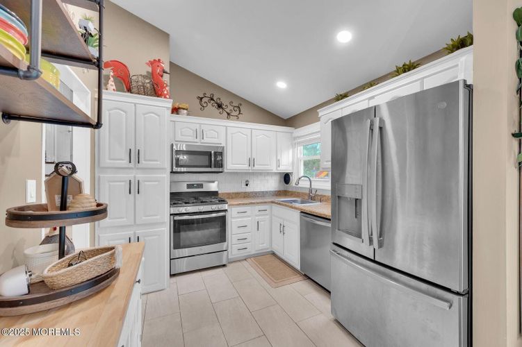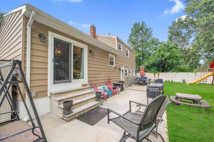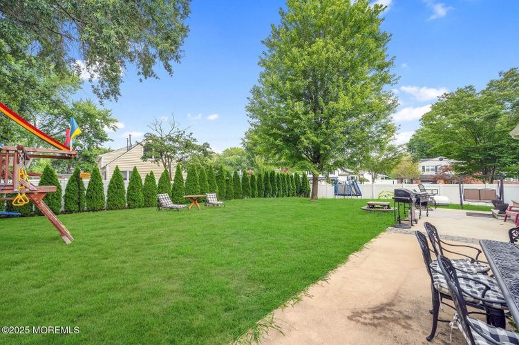 Just Reduced - Great House in a Great location - '' New Monmouth'' section of Middletown - Great split level home on great size corner lot - open airy layout - vaulted ceilings - hardwood flooring - sliders lead to patio overlooking a great size rear yard - 3 bedrooms - 1.5 bathrooms - 1 car garage - partial basement is great for storage - living room opens to dining area opens to white bright kitchen - central air - beautiful tree lined street close to shopping - local park - all rtes, GSP & Fast Ferry to NYC - not in a flood zone yet close to gorgeous sandy beaches