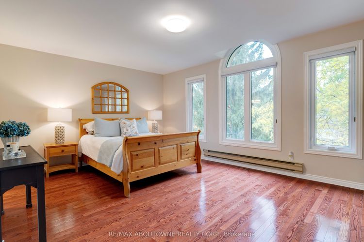 Showcasing inviting, comfortable family living, this executive Mattamy (Oxford model)home built in 1989 has been transformed into a sophisticated sanctuary. With 6 bedrooms & 4 full bathrooms upstairs including 2 spacious primary bedrooms with spa-inspired ensuites, this home balances style & function. Solid hardwood flows throughout complemented by smooth ceilings, designer trim, baseboards & contemporary door hardware, creating a cohesive, high-end finish. A major renovation in 2018 (kitchen, laundry, powder room) provides a fresh, updated living space perfect for entertaining. The heart of the home is the stunning chef-inspired kitchen where design meets practicality. A massive 13' banquette invites family & friends to gather while the oversized island with Cambria quartz countertops anchors the space. High-end appliances-Sub-Zero fridge, 36" AGA dual fuel range, Miele dishwasher, wine fridge plus pull-out pantry & spice cabinets make cooking effortless. Sliding doors & large bay window flood the space with light. A cozy family room with wood-burning fireplace & wainscoting offers a warm retreat while a separate dining room & main-floor office/den provide versatile living spaces. Upstairs all 6 bedrooms feature hardwood & custom closet organizers. The 5-piece primary ensuite dazzles with heated floors, a spa-style shower with rain head & body jets plus soaker tub. The unfinished basement provides a blank canvas for customization-home gym, media room,etc. Set on an oversized corner lot measuring 72' across the back, the outdoor space is family's dream-saltwater pool with waterfall & slide, stone patio & BBQ area, unique 2-storey playhouse & cabana, plus a grass area perfect for children & pets. Located in the highly sought-after Glen Abbey community with top-ranked schools, parks, trails, community center, shopping, GO transit & highways nearby, this residence offers the ultimate blend of style, space & location-a rare Oakville treasure designed for today's famil (id:26452)