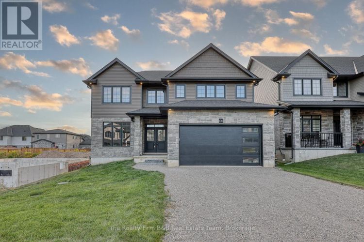 Welcome to 100 Graydon Drive in Mt. Elgin Meadowlands the Chelsea II model by Mount View Homes. With its thoughtful design and quality finishes, this home truly combines comfort, style, and functionality for todays family living. From the moment you arrive, you will notice the curb appeal stone accents across the front, brick wrapping the main level, and a blend of vinyl siding and shakes above. Enjoy morning coffee on the covered front porch or gather for family dinners on the back deck, perfectly set up for outdoor living. Inside, the spacious layout offers nearly 2,835 sq. ft. with four bedrooms each with its own walk-in closet. The primary suite feels like a retreat, complete with a freestanding tub, tiled shower, and double sinks. Upstairs also includes three full baths, making mornings easier for everyone. The main floor was designed for family life. The kitchen features a walk-in pantry, a large island with breakfast bar, and an open dinette with patio doors leading to the covered deck. The living room is bright and inviting, anchored by a gas fireplace with stone surround. Engineered hardwood flows throughout, connecting each space seamlessly. A versatile front room can be used as a home office or formal dining room, while the mudroom with cubbies and the laundry area off the garage add everyday convenience. Additional details include a solid oak staircase, tile flooring in key areas, and easy highway access plus you're just around the corner from Oxford Hills Golf.100 Graydon Drive isn't just a house, its a place designed for the way families live today. Come see the craftsmanship and care that make this home one you will appreciate for years to come. (id:26452)