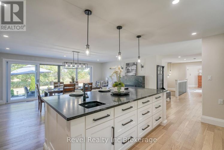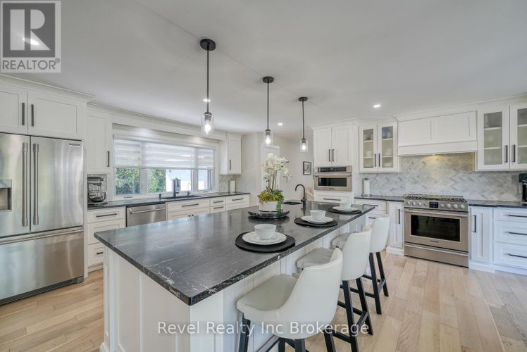 Welcome to a private ranch-style retreat, set on 37.85-42 acres and designed for those who value elegance, comfort, and space. A tree-lined laneway leads to this stunning residence, where contemporary stone and brickwork, a paved entry, and multiple garages (9 in total, including a heated and air-conditioned 2-car attached) set the tone for sophistication. Inside, the open-concept layout pairs luxury with functionality. The chefs kitchen features custom cabinetry, granite counters, and premium stainless appliances, seamlessly flowing to the dining area and stamped concrete patio, perfect for entertaining. A granite fireplace with WETT-certified insert offers warmth and style.The primary suite is a sanctuary with vaulted ceilings, a gas fireplace, two walk-in closets, a private terrace, and a spa-inspired ensuite with dual vanities, freestanding tub, walk-in shower, and separate bidet room. A spacious in-law suite with its own deck and ensuite offers comfort for extended family or guests.The light-filled lower level features oversized windows, a full bath, and versatile space for a gym, office, or rec room. Solid wood oversized doors and vaulted ceilings add timeless character throughout. Beyond the home, income opportunities abound with rental shop/office space, farmland, solar panels, and a fenced compound. Modern upgrades include on-demand hot water, water treatment system, and a 15kw roof-mounted solar system with off-grid potential.This estate blends luxury living with country serenity, offering space, privacy, income potential and lifestyle all in one just outside of town. (id:26452)