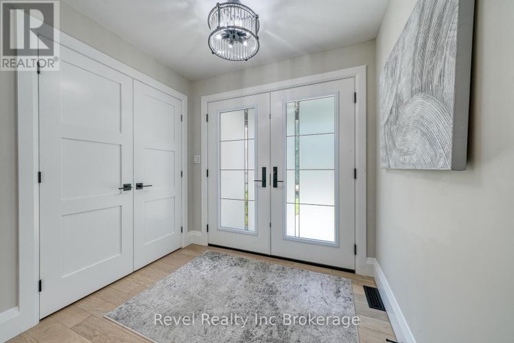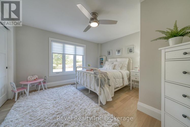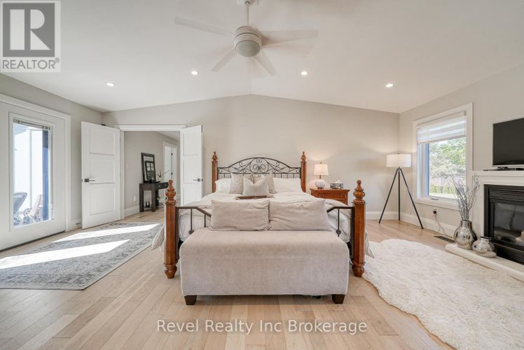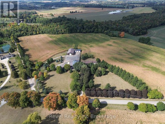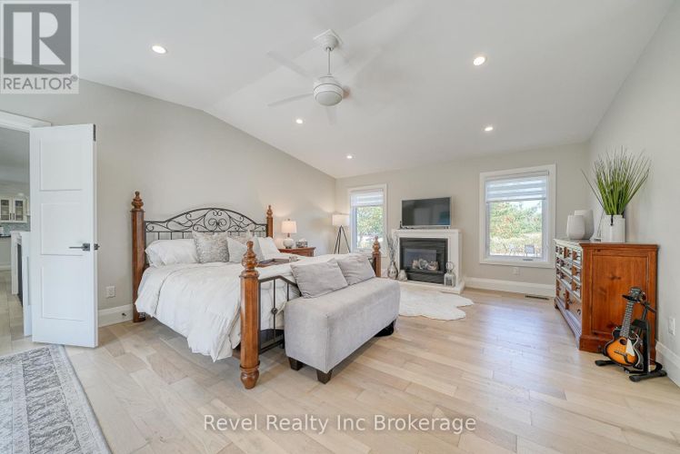 Welcome to a private ranch-style retreat, set on 37.85-42 acres and designed for those who value elegance, comfort, and space. A tree-lined laneway leads to this stunning residence, where contemporary stone and brickwork, a paved entry, and multiple garages (9 in total, including a heated and air-conditioned 2-car attached) set the tone for sophistication. Inside, the open-concept layout pairs luxury with functionality. The chefs kitchen features custom cabinetry, granite counters, and premium stainless appliances, seamlessly flowing to the dining area and stamped concrete patio, perfect for entertaining. A granite fireplace with WETT-certified insert offers warmth and style.The primary suite is a sanctuary with vaulted ceilings, a gas fireplace, two walk-in closets, a private terrace, and a spa-inspired ensuite with dual vanities, freestanding tub, walk-in shower, and separate bidet room. A spacious in-law suite with its own deck and ensuite offers comfort for extended family or guests.The light-filled lower level features oversized windows, a full bath, and versatile space for a gym, office, or rec room. Solid wood oversized doors and vaulted ceilings add timeless character throughout. Beyond the home, income opportunities abound with rental shop/office space, farmland, solar panels, and a fenced compound. Modern upgrades include on-demand hot water, water treatment system, and a 15kw roof-mounted solar system with off-grid potential.This estate blends luxury living with country serenity, offering space, privacy, income potential and lifestyle all in one just outside of town. (id:26452)