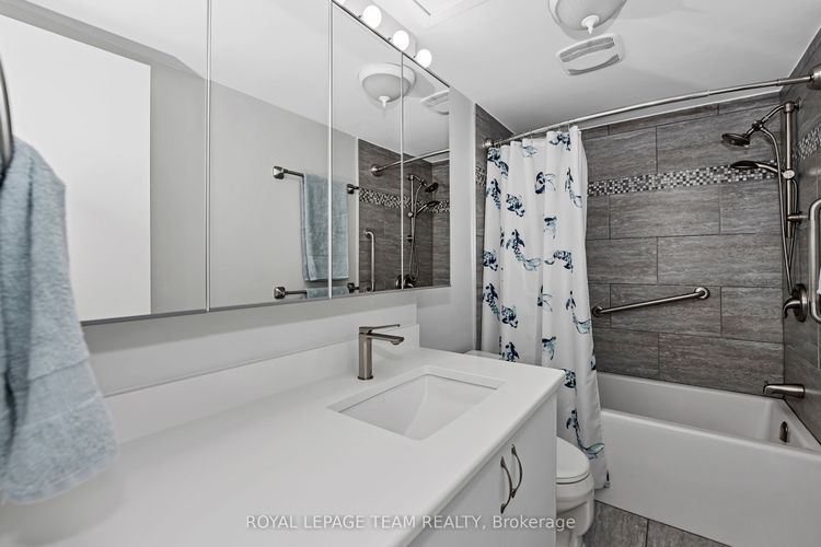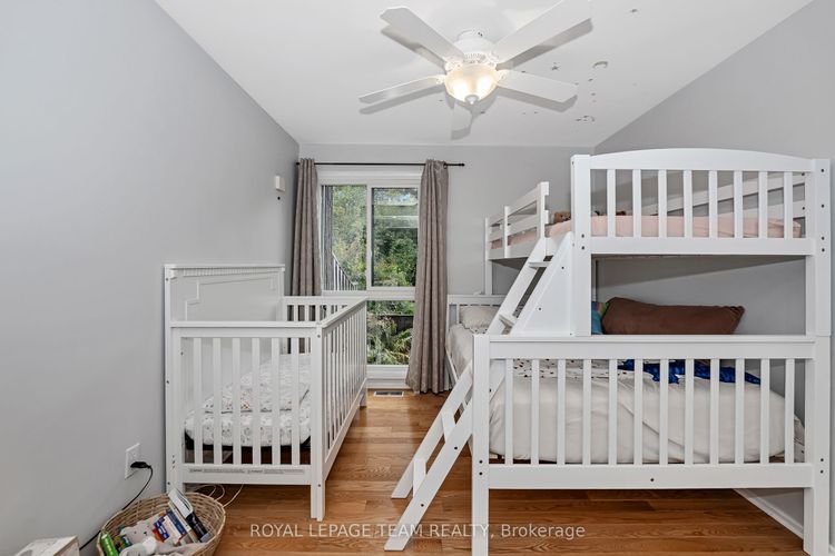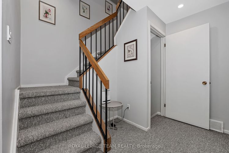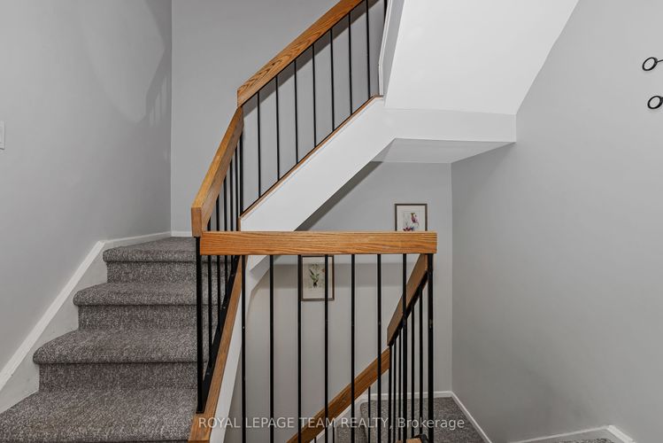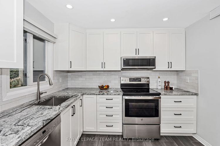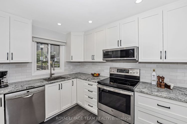 Rare opportunity to own one of only nine executive townhomes with river views at Ambleside One! Offering over 1,730 sq. ft. of renovated living space, this home is set in a private location with no rear neighbours-your own peaceful paradise in the city. Simply unpack and enjoy a property thoughtfully updated for the most meticulous buyer.The open-concept main level features soaring cathedral ceilings, hardwood floors, a striking gas fireplace, and a walkout to a private balcony overlooking the Ottawa River and parkway, buffered by mature trees. A versatile main-level room functions perfectly as a den, playroom, or additional bedroom, providing flexibility for your lifestyle.The ground-level walkout opens to a fenced yard-ideal for entertaining, gardening, or relaxing outdoors-with easy access to NCC pathways for walking, biking, or skiing. Renovations include removal of popcorn ceilings, pot lights with dimmers, and sound insulation in all bedrooms. The primary suite features double closets and a beautifully updated ensuite with a glass walk-in shower. The lower bathroom offers a custom Laurysen vanity with quartz countertop, while the large bedroom showcases oak hardwood and mirrored closet doors.The refreshed kitchen includes solid maple cabinetry, granite counters, and newer appliances. The condo corporation has completed key updates: high-efficiency furnace, roof (south facing), bathroom fans, newer windows, and a modern gas fireplace insert. Ambleside One is a true all-inclusive, pet-friendly community with Bell Fibe internet/TV, heat, hydro, and water included, plus resort-style amenities: indoor saltwater pool, gym, sauna, library, guest suites, party room, workshop, car wash, and tuck shop. Underground parking (#263) is conveniently located near the door on level two. Easy access to the future LRT, river pathways, and city conveniences-this rare home offers space, privacy, and lifestyle in one exceptional package. (id:26452)