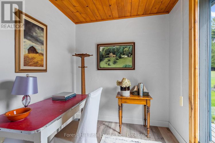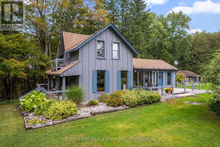 This 1890 century home sits on 23.1 acres with Bell Creek running through the property, offering a rare combination of heritage charm, privacy, and modern updates. Lovingly maintained over the years, its ready for those seeking a well-balanced country lifestyle just minutes from town. The property includes approx. 2 acres of lawn and gardens with raised flower beds, mature trees, and walking trails. Two decks overlook the gardens and woodland, providing a quiet place to relax with the sound of the creek in the background. Inside, the bright, eat-in country kitchen features an oversized island, generous windows, a fireplace and a walkout to the deck. A cozy living room and a compact office area complete the main floor. Upstairs you'll find two well-proportioned bedrooms and the lower level is clean and dry, offering a laundry area, utility room, and workbench. The detached two-car garage provides ample storage and workspace, including a heated area suitable for hobbies or small animals. Practicality extends beyond the home itself. This private setting is on a paved road and just 3 km from Durham, where you'll find shopping, schools, medical care, and recreation facilities. Four-season activities are all nearby - swimming, paddling, fishing, skiing, snowmobiling, and golf - making this an excellent base for both work and leisure. With creek frontage, usable acreage, and proximity to essential amenities, this property offers the convenience of small-town living paired with the space and privacy of a country retreat. (id:26452)