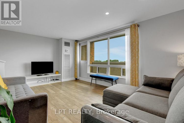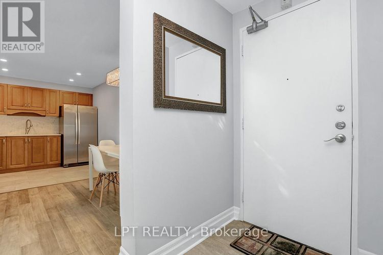 Bright and beautifully updated 2-bedroom condo located on the 8th floor of a quiet, well-maintained building in Ottawa's west end. This south-facing unit is flooded with natural light and features a thoughtfully designed open-concept layout with excellent sound insulation thanks to concrete construction separating the living and sleeping areas. Enjoy your morning coffee on the private balcony with expansive views. The unit includes covered parking and a generously sized storage locker. Monthly condo fees are truly all-inclusive covering heat, hydro, A/C, water, and access to a full suite of amenities including a rooftop pool, fitness center, sauna, landscaped gardens, laundry room, and more. Residents benefit from a strong sense of community, with access to social programs such as yoga classes, coffee mornings, game nights, and Oasis services for seniors. Ideally situated just steps from the Ottawa River Parkway walking and cycling paths, and a short stroll to the future New Orchard LRT station. Move-in ready with recent updates throughout, including quartz countertops, solid wood cabinetry, smooth ceilings, upgraded light fixtures and doors, engineered hardwood and tile flooring, a modern electrical panel, and quality stainless steel appliances (Fridge, Stove, Microwave all approx. 5 years old). A perfect option for first-time buyers, downsizers, or those seeking a peaceful, turnkey lifestyle in a central location. 24 Hour Irrevocable on All Offers asper form 244. (id:26452)