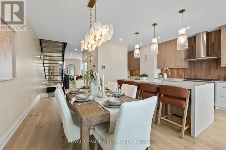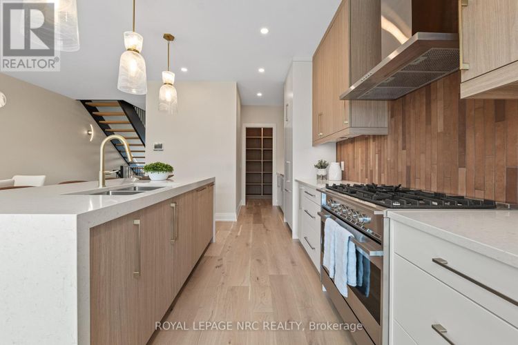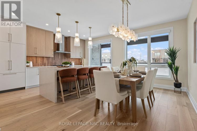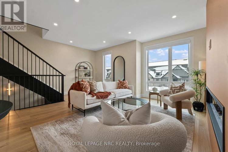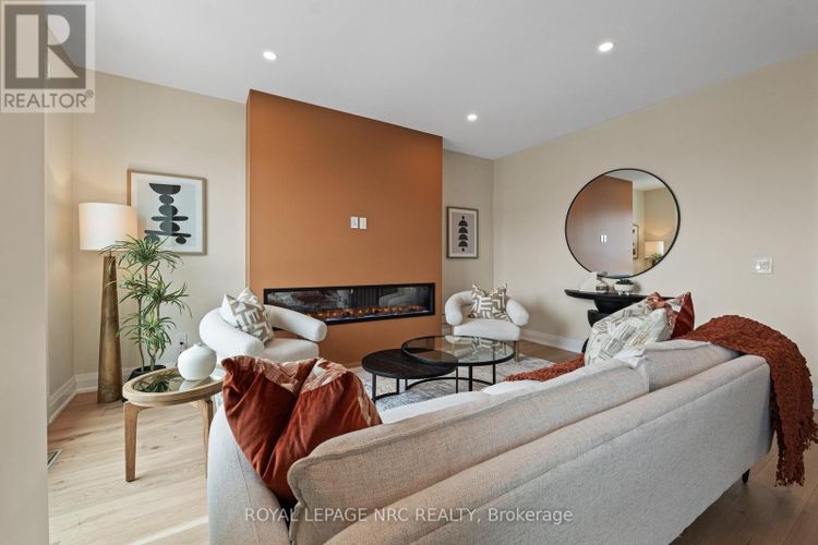 Brand new! Interior unit 3 storey modern terrace townhome with 2314 finished sq ft, 3 beds & 3.5 baths. Dont want stairs? This specious townhome includes a private residential elevator that services all floors. Main level includes a bedroom & a 3pc bathroom. Travel up the stunning oak, open riser staircase to arrive at the 2nd level that offers 9' ceilings, a large living room with pot lights & 77" fireplace, dining room, gourmet kitchen with cabinets to the ceiling with quartz counters, pot lights, under cabinet lights, tile backsplash, fridge water line, gas & electric hookups for stove, a servery, walk in pantry and a 2 pc bathroom. Off the kitchen you will find a patio door leading to the 20'4" x 7'9" balcony above the garage (frosted glass & masonry privacy features between units & a retractable awning). The 3rd level offers a serene primary bedroom suite with walk-in closet & luxury 4pc ensuite bath (including granite/quartz counters on vanity & a breathtaking glass & tile shower), laundry, 4pc bathroom and the 2nd bedroom. Motorized Hunter Douglas window coverings included. The finished basement rec room offers luxury vinyl plank floors and a large storage area. Exquisite engineered hardwood flooring & 12" x 24" tiles adorn all above grade rooms (carpet on basement stairs). Smooth drywall ceilings in all finished areas. Elevator maintenance included for 5 years. Smart home system with security features. Sod, interlock walkways and driveways (parking for 4 cars at each unit between garage and driveway) and landscaping included. Only a few a short walk to downtown Fonthill, all amenities & the Steve Bauer Trail. Easy access to golf, wineries, QEW & 406. Forget being overwhelmed by potential upgrade costs, the luxury you're dreaming about is a standard feature at the Fonthill Abbey! Built by national award winner Rinaldi Homes. 30 Day closing available. 2.99% financing available for 2yr term - see Sales Rep for details. (id:26452)