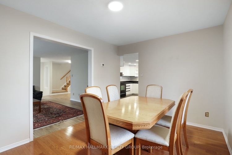 Spacious 3+1 bedroom, 4-bathroom detached home in the heart of Bells Corners, offering plenty of room for large and growing families. The main floor features a formal living and dining area, ideal for family gatherings and entertaining, along with a bright eat-in kitchen overlooking the backyard. Just a few steps up, a large family room provides the perfect space for movie nights or a kids' play area. Upstairs, you'll find four generous bedrooms, including a primary suite with a walk-in closet and ensuite bathroom. The finished basement adds even more living space, featuring a fifth bedroom, a full bathroom, and a flexible area perfect for a home office, gym, or recreation room. Outside, enjoy a double car garage and an oversized interlock driveway that can accommodate up to four vehicles. The private fenced backyard offers space for outdoor activities and family gatherings. Located in a quiet, family-friendly neighbourhood just steps from NCC Trail 24, parks, schools, and local amenities - this home is an excellent choice for move-up buyers looking for more space in a great location. (id:26452)