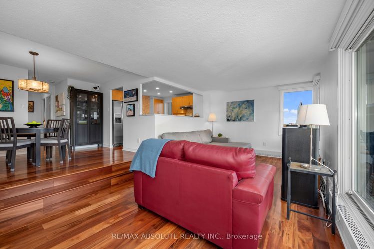 Welcome to this stunning 2-bedroom plus den corner condo offering spectacular views of the Ottawa River and two expansive balconies to enjoy your morning coffee or evening sunsets. This bright, open-concept layout is perfectly designed to maximize light and space, enhanced by beautiful five-inch-wide tigerwood hardwood floors that bring warmth and elegance throughout. The updated kitchen features sleek quartz countertops, modern cabinetry, and a thoughtfully opened wall design that connects seamlessly to the dining and living areas-ideal for entertaining or relaxed everyday living. The den provides excellent versatility, perfect for a home office or reading nook. This rare corner unit also includes a large in-unit storage closet, plus an extra storage locker in the basement and one convenient parking space. The pet-friendly building offers an impressive list of amenities: a large in-ground pool, sauna, party room, library, fully equipped workshop for DIY projects, a large gym with all necessary equipment, and a bright common laundry area with its own cozy sunroom. You'll also find two car wash bays, a bike garage for cycling enthusiasts, a convenience store right in the building, and even three guest rental suites for visiting family or friends. Located steps from Britannia Beach, Britannia Yacht Club, and surrounded by walking trails and green space, this is urban convenience blended with nature at its finest. You're also within easy walking distance of grocery stores, cafes, and everyday amenities, and with the new LRT line (New Orchard) opening very soon, commuting will be effortless. Condo fees include all utilities-heat, hydro, and water-plus Bell high-speed internet, Fibe TV with PVR, and the full Bell TV package. All you'll need to pay for is your cell phone. This is worry-free living at its best in one of Britannia Bay's most desirable buildings. Don't miss your chance to own this bright, spacious, and beautifully updated river-view condo. (id:26452)