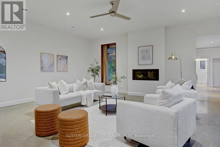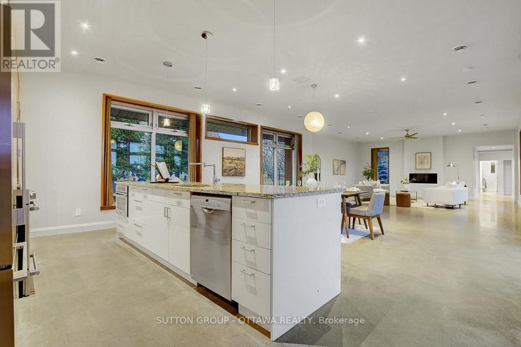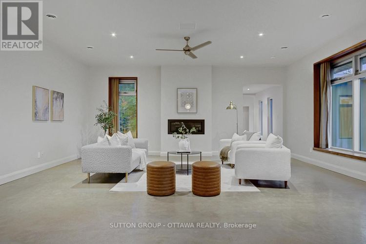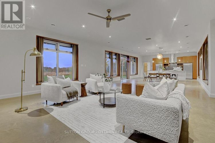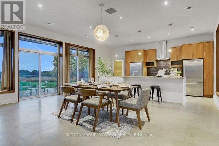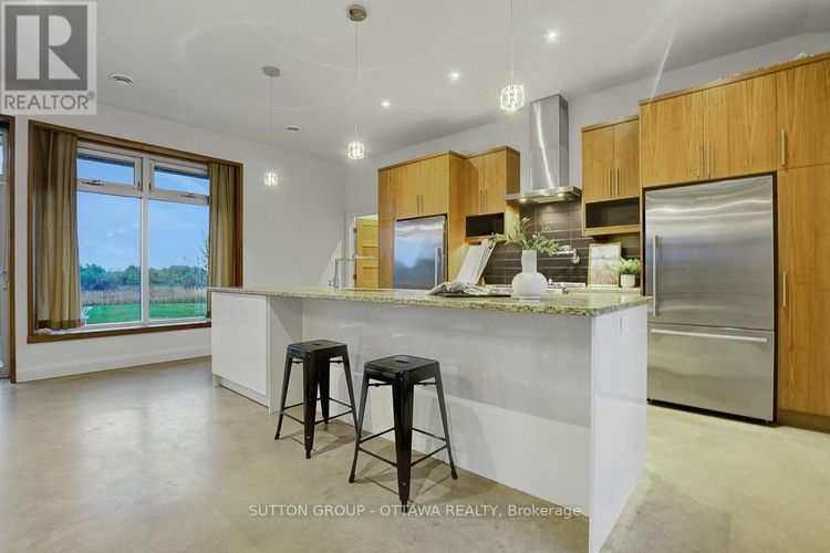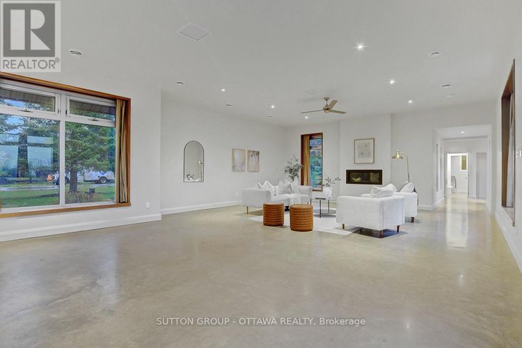 Welcome to 7844 Bleeks Road - Country Luxury in the Heart of Munster Located in the charming village of Munster and within walking distance of Saunders Farm, this beautifully updated bungalow sits on a tranquil two-acre lot that perfectly blends country serenity with modern comfort. Originally renovated in 2014 and expanded with a stunning addition in 2018, the home showcases quality craftsmanship, thoughtful design, and an inviting open-concept layout ideal for family living and entertaining. Step inside from the side entrance into a wide hallway that leads to a bright, spacious living area where polished concrete floors with radiant heat create warmth and elegance. The chef's kitchen features stainless-steel appliances, a gas stove with pot filler, and an abundance of counter space, flowing naturally into the dining and living rooms filled with natural light and scenic views of the surrounding greenery. The home offers three bedrooms and three full bathrooms, including a generous primary suite with a beautifully renovated ensuite completed in 2025. The second bathroom, completed in 2018, doubles as a convenient laundry space. A fully finished basement extends the living area and sits beneath the 2018 addition, perfect for a recreation room, gym, or home office.Outside, a wrap-around deck overlooks a gently sloping backyard surrounded by trees, offering the perfect setting for outdoor gatherings or quiet mornings with coffee. The property features a drilled well, a new septic system installed in 2018 and pumped in 2020, a metal roof on the main home, and new shingles and siding on the addition. Ample driveway parking provides space for family and guests alike. Only twenty minutes from Highway 417, this property offers the best of both worlds - peaceful country living with convenient access to Ottawa's west-end amenities.Easy to show. Heated thermal floors on one side and forced air on the new additions. 2 furnaces, 2 Ac, 2 Hot water tanks (id:26452)