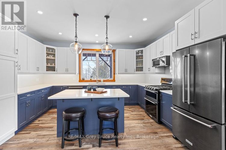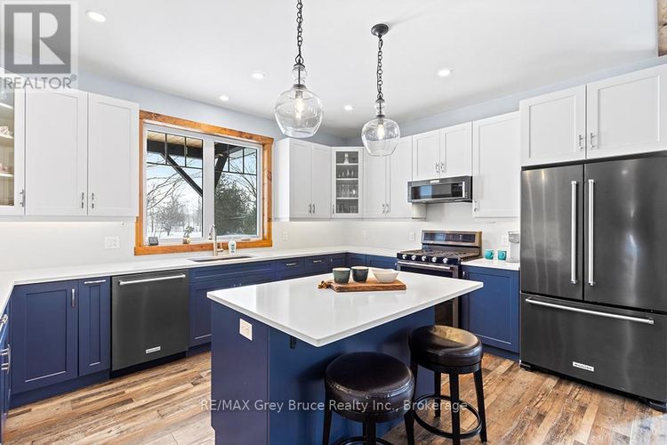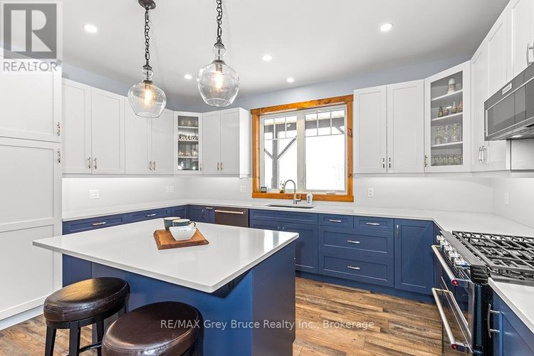 Welcome to 1379 West Road, a thoughtfully designed custom newer build home, set on a private 2.4-acre lot! It features 4 bedrooms, 4 bathrooms, and over 2,100sqft. Great for large families and/or great B&B opportunity with separate entrances and ensuite bathrooms! Snowmobile trail is just next door! Located just 10 minutes from both the town of Lions Head and Pike Bay area. Step into the welcoming foyer with a built-in storage bench and closet, leading into an open-concept living space. The chefs kitchen features quartz countertops, custom cabinetry, and an island with a built-in appliance lift. The living room boasts a stunning floor-to-ceiling fireplace and doors leading to a large back deck, perfect for entertaining or relaxing. Three of the four spacious bedrooms include private ensuites, ideal for guests, large families or rental opportunities. The oversized attached garage (24ft by 23ft) provides ample space for vehicles, tools, and storage, making it perfect for hobbyists or year-round convenience. Enjoy nearby snowmobile trails, Bruce Trail hiking access, and easy drives to Tobermory, Bruce Peninsula National Park, and the Grotto. Whether you're looking for a full-time residence or a retreat on the Bruce, this move-in-ready home offers a rare combination of modern design and natural beauty. (id:26452)