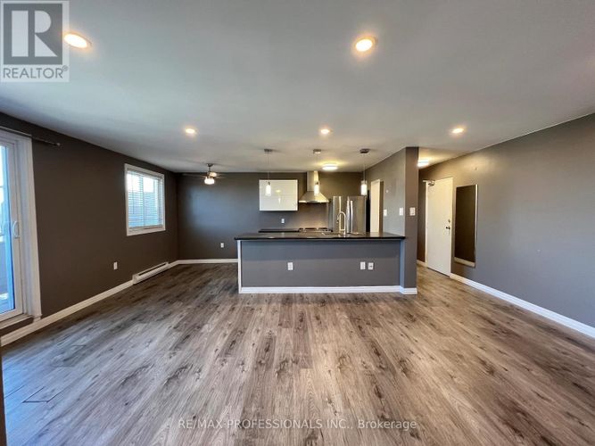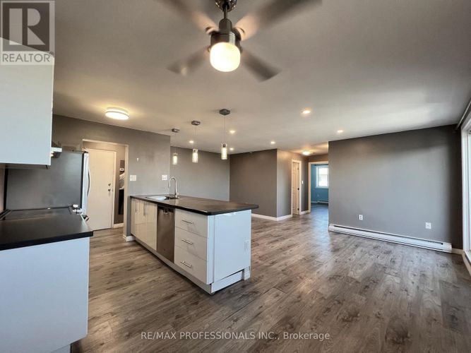 pacious Open Concept 2 bedroom 1-bathroom apartment with sunny views. Renovated and updated throughout. Open concept living and dining room. Updated kitchen with large island and stainless steel appliances with a separate eating area. The primary bedroom includes a walk-in closet & A/C unit. The second bedroom has a closet. Updated 4 pc. bath. Laundry is located on the same floor. Good sized balcony.Building has an outdoor pool. Controlled entry access. Mailboxes with secure package delivery in the foyer. Balcony is 5.5 m X 1.57m. Conveniently located by White Oaks Mall Shopping District & Hwy 401, parks, and trails, and transit walking distance. (id:26452)