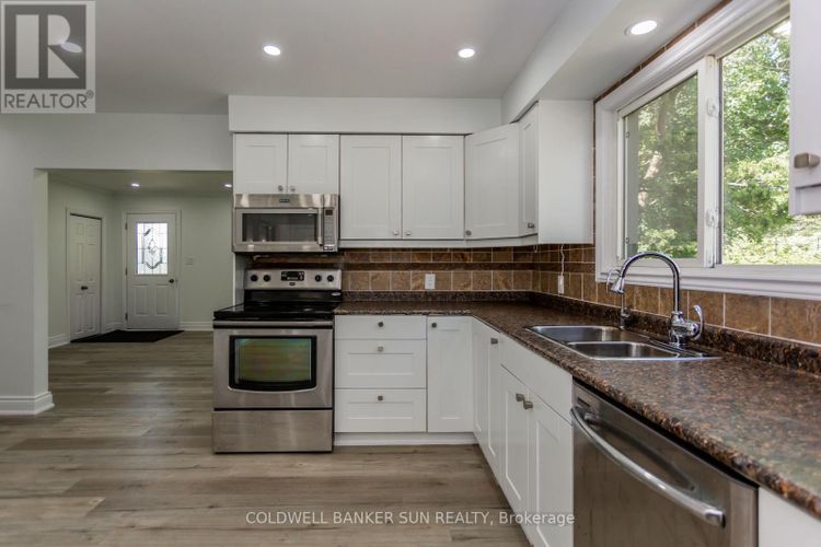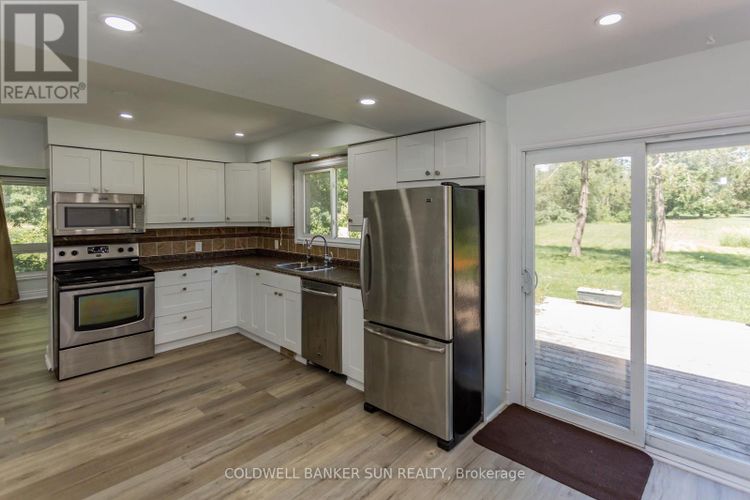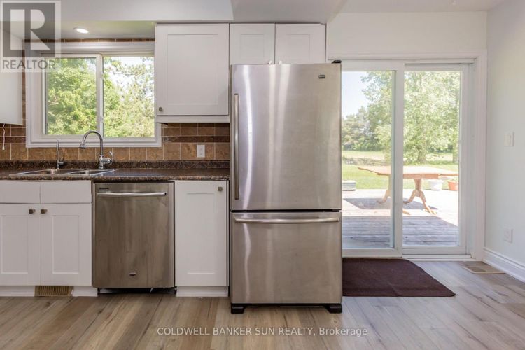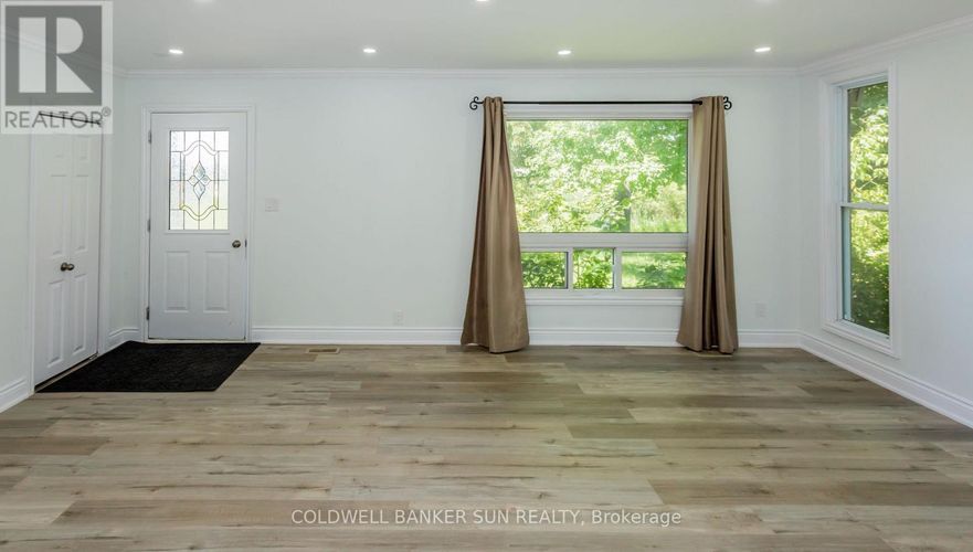 Fully upgraded 2-bedroom bungalow situated on over 3 acres of land just 2 minutes from Hwy 401 and Toyota. This beautiful country property offers the perfect blend of privacy and convenience. Featuring new vinyl flooring throughout, fresh paint, and an updated kitchen with stainless steel appliances, this home is move-in ready. Enjoy abundant pot lights and a walkout to a large deck overlooking hundreds of feet of open land and mature bush ideal for relaxing or entertaining. The outbuilding, constructed using storage containers and wood, is heated and provides excellent space for a workshop or additional storage. A new central A/C system was installed in summer 2025. Flexible options available, the buyer can assume the existing tenant or take vacant possession upon closing. Kindly respect tenants privacy and personal belongings during all showings. Pictures were taken prior to tenant occupancy. (id:26452)