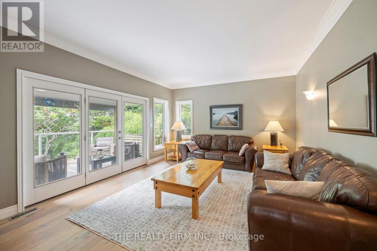Located in the highly desirable Orchard Beach neighbourhood of Port Stanley, this custom-built home offers a rare blend of elegance, comfort, and panoramic views. Perched above the village, the property overlooks the village and Lake Erie, providing a peaceful and scenic backdrop from multiple vantage points. Ideally situated, it's just a short 5-minute walk to Little Beach and only 7 minutes to the vibrant village core filled with shops, restaurants, and local charm. The beautifully landscaped exterior features a covered front porch, double garage, and concrete driveway, creating an impressive welcome. Inside, the foyer opens into a bright, open-concept main level with soaring ceilings and large windows that fill the space with natural light. The kitchen, dining, and living areas flow seamlessly and include a gas fireplace-perfect for entertaining or everyday living. A cozy family room nearby offers a quiet space to relax and opens to a partially covered deck with spectacular lake views, ideal for outdoor dining or summer evenings. The second floor offers two generous bedrooms and a full bath, while the third floor is dedicated to a private primary suite featuring a walk-in closet, 3-piece ensuite, and sitting area with access to a balcony-your own private retreat. The lower main level includeds a laundry room & 2-piece bath. The basement has an additional bedroom, 3-piece bathroom, workshop with garage walk-up, and a family room that opens to a backyard oasis with river rock landscaping, fire pit, and lake views. With potential for multigenerational living or Airbnb income, this exceptional home offers luxury, function, and an unbeatable location. (id:26452)