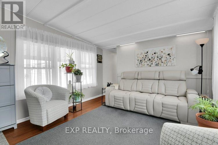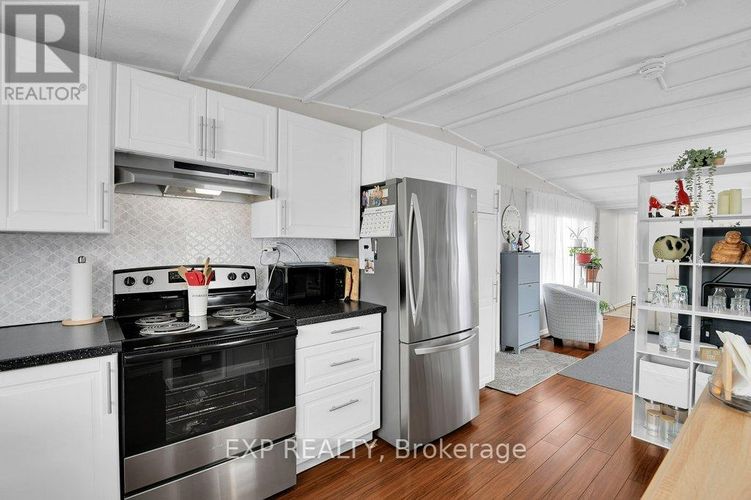 Welcome to the highly sought after adult lifestyle community of Oxford Acres, located just on the edge of Brockville in its own peaceful setting. This one bedroom mobile home boasts pride of ownership and offers an inviting atmosphere from the moment you enter. Features include a new kitchen (2024), all new appliances(2024), bathroom (2024), spray foam under the entire 65' (2024), paved driveway with room for 2 vehicles, an abundance of windows offering a lot of natural light. This is a care-free lifestyle with a yard where you can have your garden and enjoy the outdoors. Complete with a metal roof, forced air gas heating, central air, 2 large sheds for your patio furniture and gardening tools. Monthly association fee of $317 includes water, garbage removal, taxes, snow removal of the main road in the community. All offers must include a condition requiring buyers to meet with the Oxford Acres Co-operative Committee to confirm eligibility and agreement to abide by the community's Rules and Regulations Act. Buyers must also purchase 1,000 shares from the seller at current market value of $4,000, payable by separate certified cheque or bank draft on closing. Don't miss the opportunity to be a part of this friendly community! (id:26452)